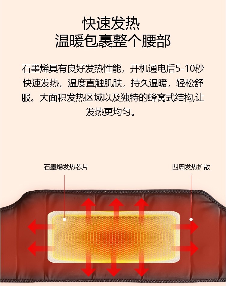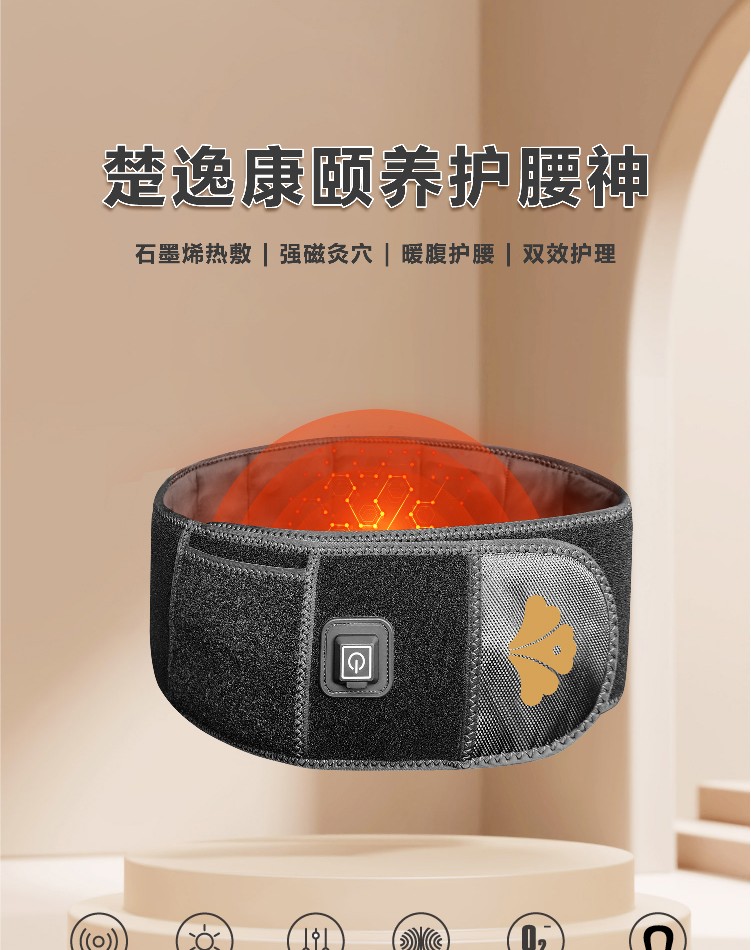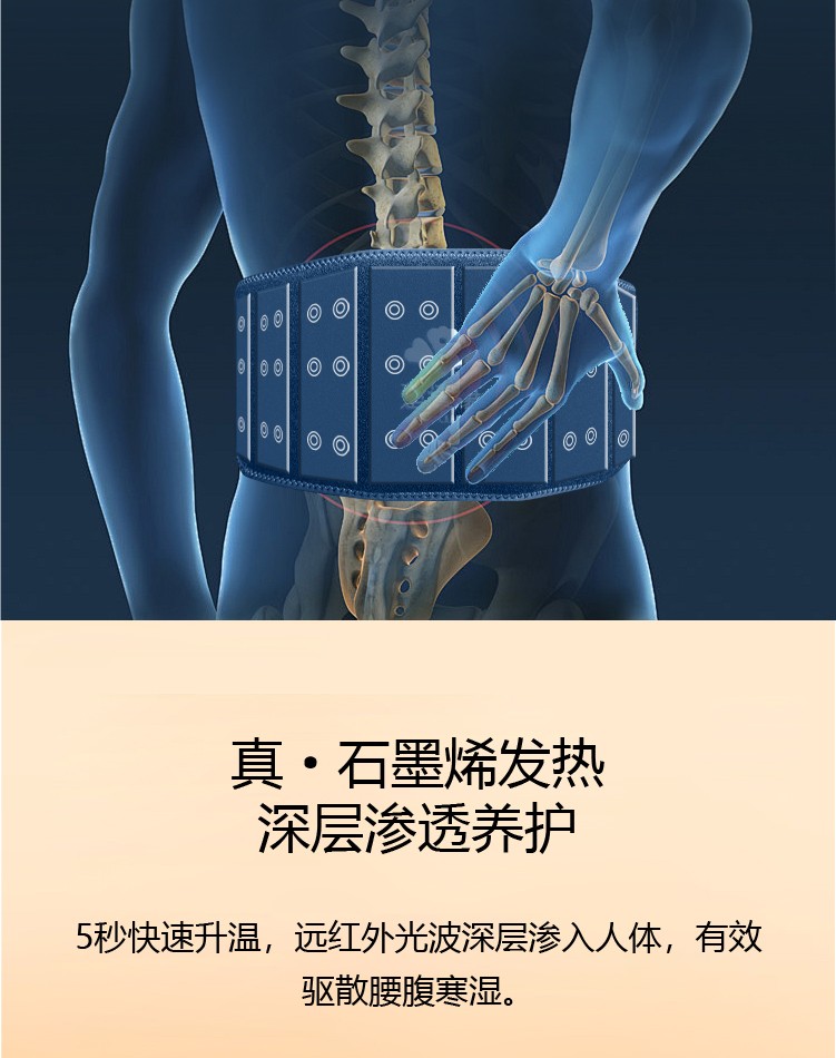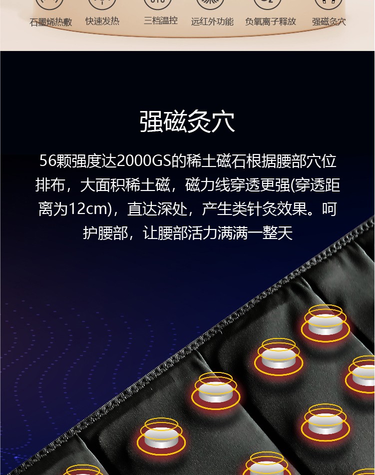 功能:石墨烯热敷、强磁灸穴、暖腹护腰、负离子