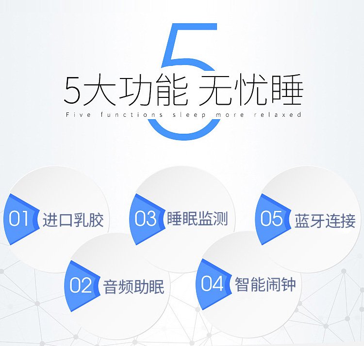 功能:1、学习娱乐2、舒适乳胶3、智能闹钟4、音频助眠5、睡眠监测6、无线蓝牙
