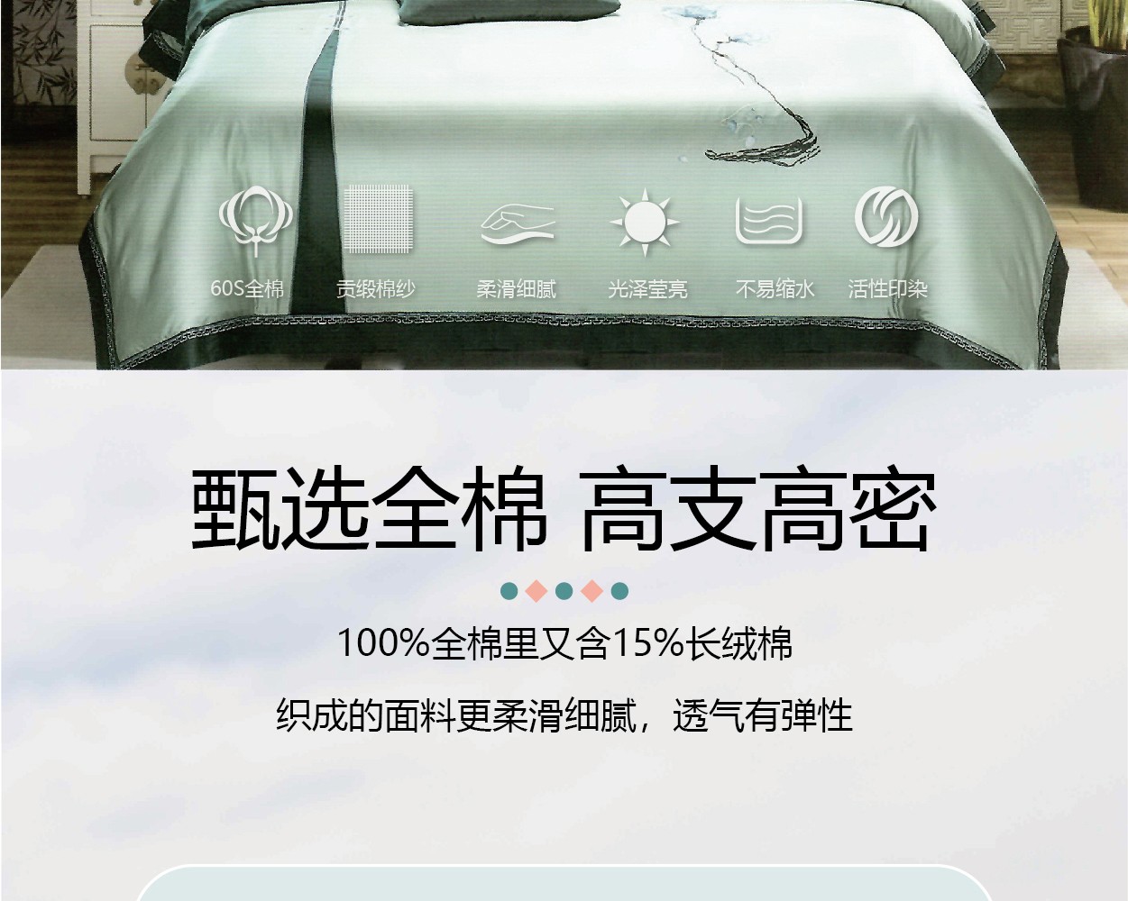 描述:新中式风格,缎纹织造,绣花温馨高雅,舒适亲肤,裸感极致体验