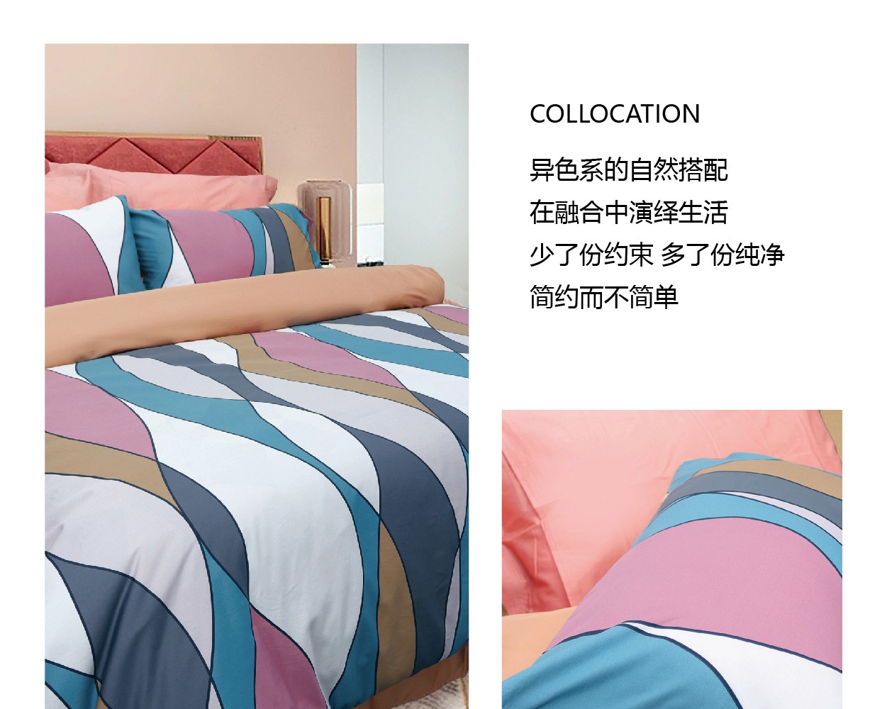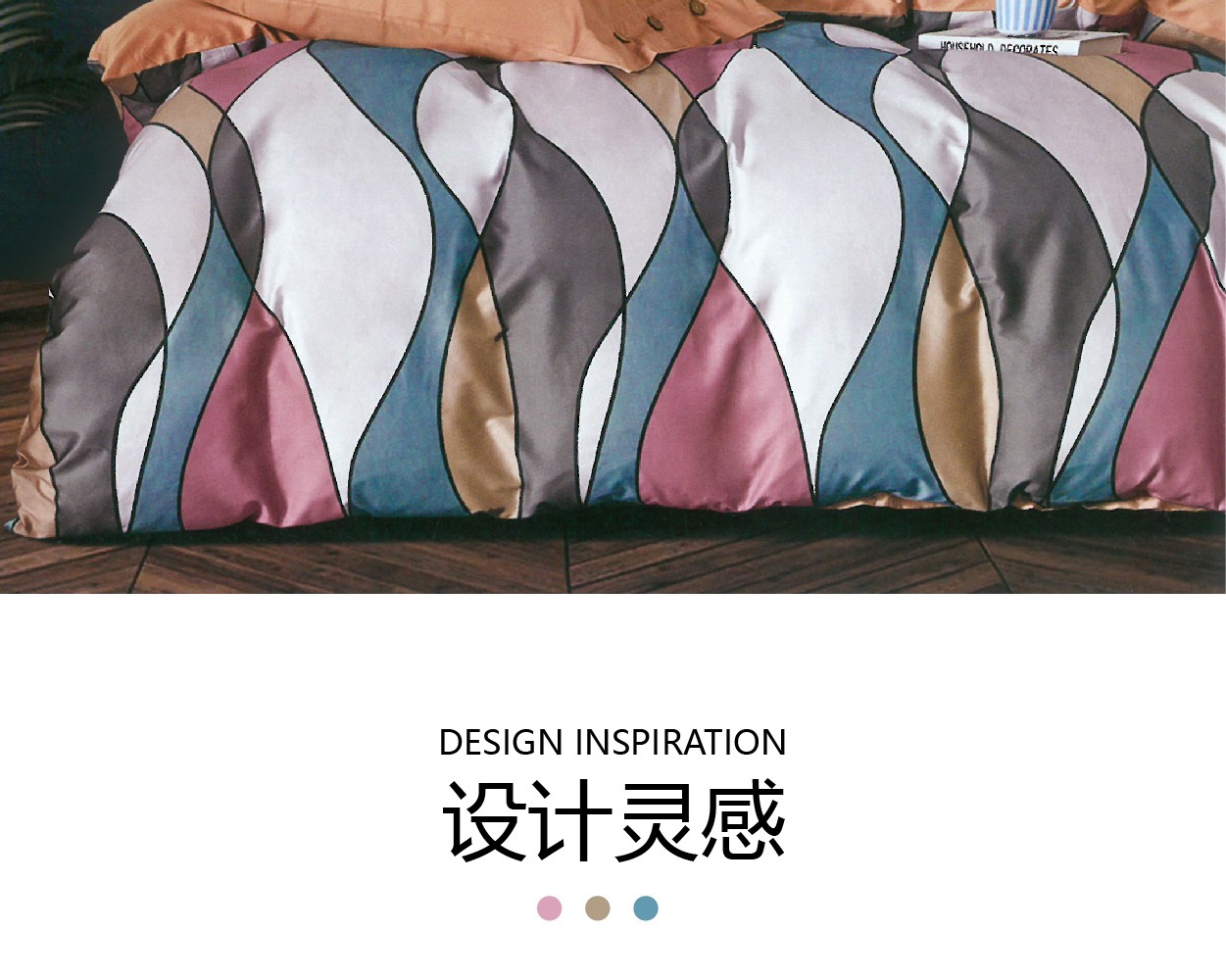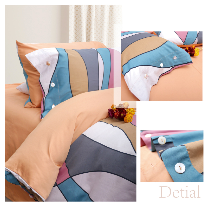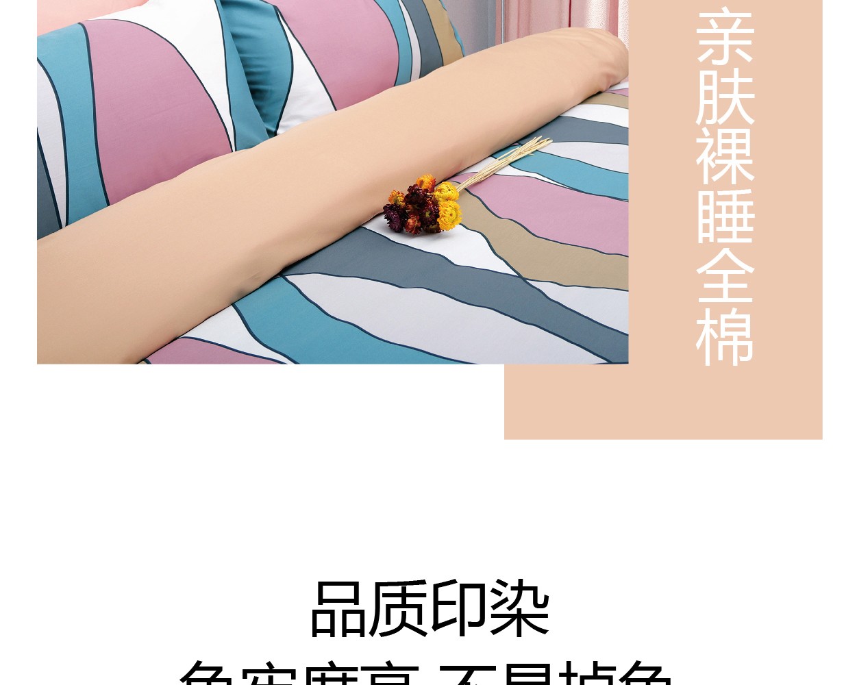 描述:100%纯棉面料,精选长绒棉,环保活性印花工艺,健康环保 全工序纯棉精织,柔软舒适,吸湿透气,带给您舒适的睡眠体验。