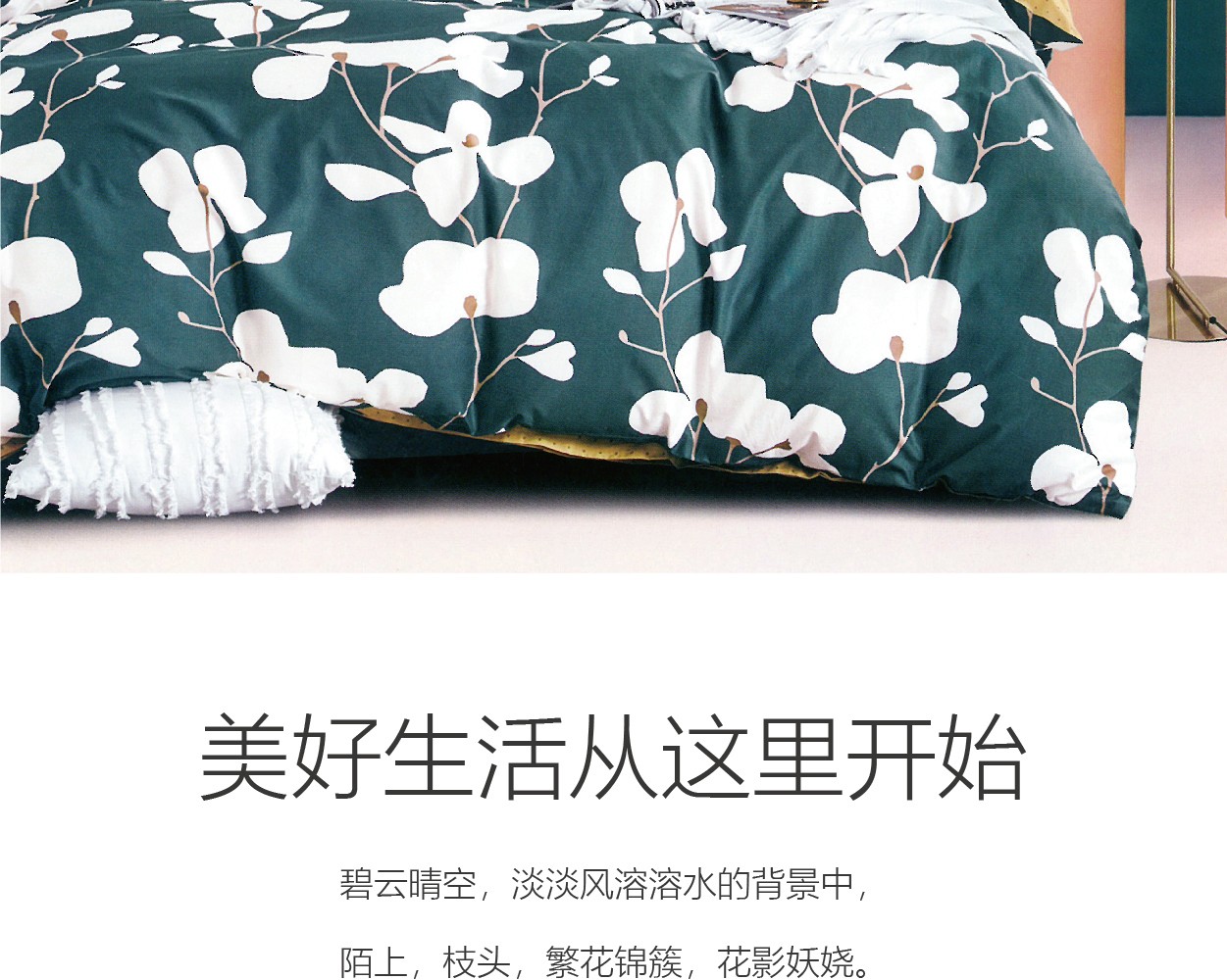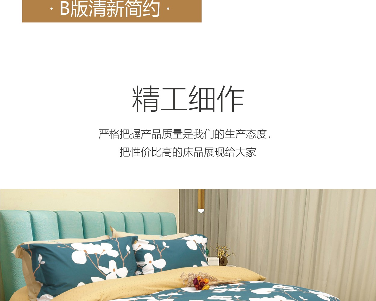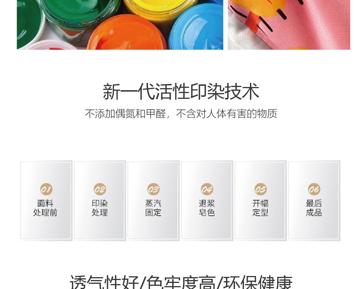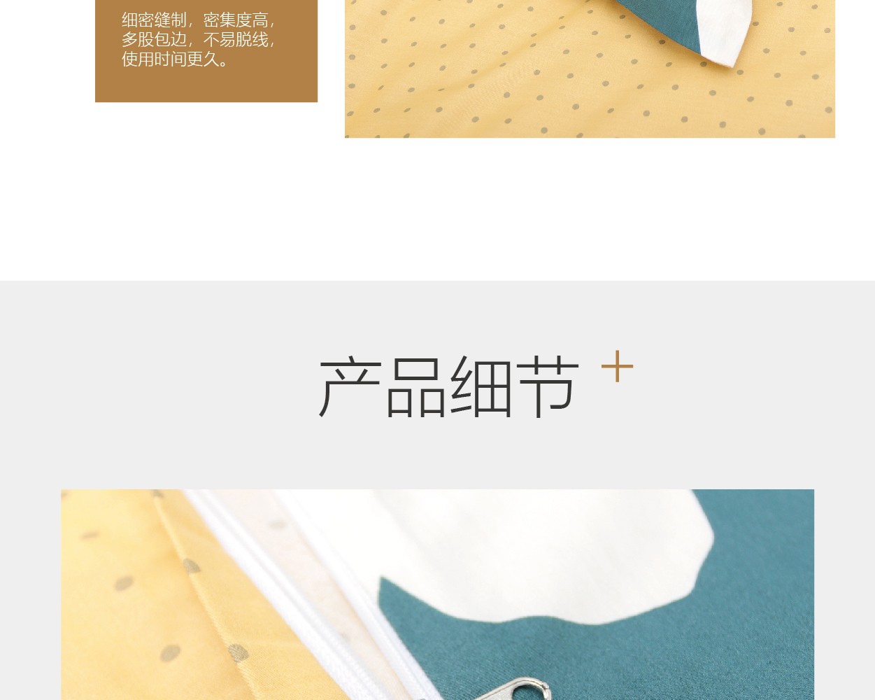 描述:100%纯棉面料,优质环保印染工艺,无任何甲醛、增白剂、安全环保健康 全工序纯棉精织,柔软舒适,吸湿透气,带给您舒适的睡眠体验。