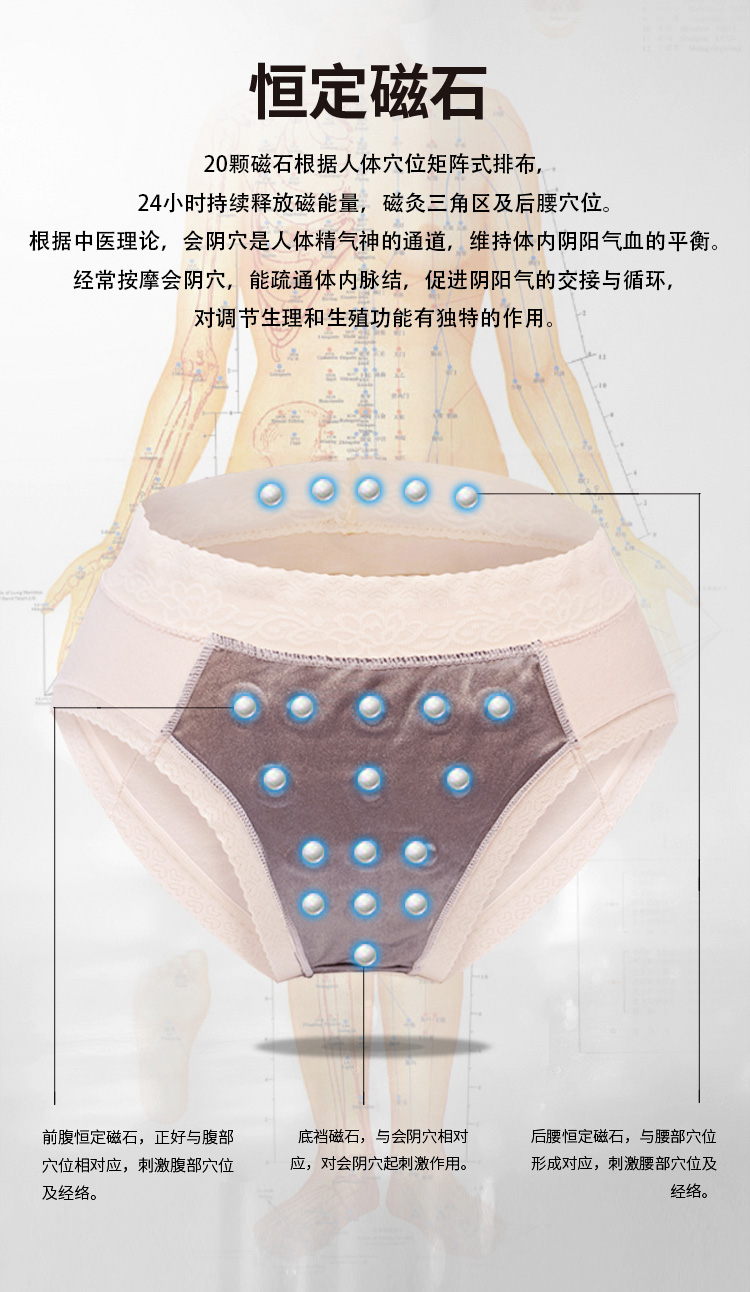 描述:穿上女王酷、枯木逄春生。强力抑菌护私密、妇科炎症少惹你。 磁灸会阴穴,少得归科病。提臀护腰腹,蕾丝勒无痕。