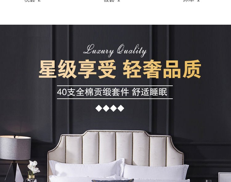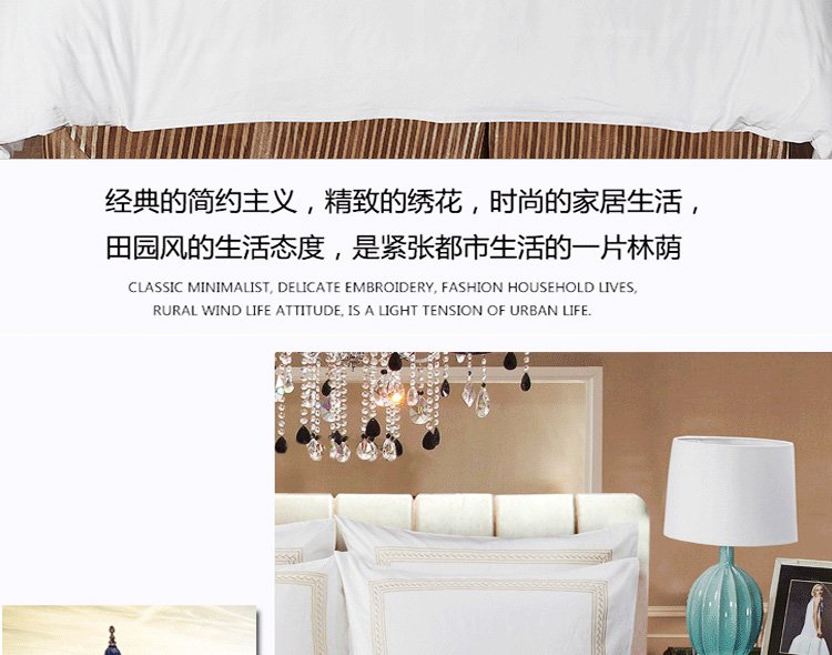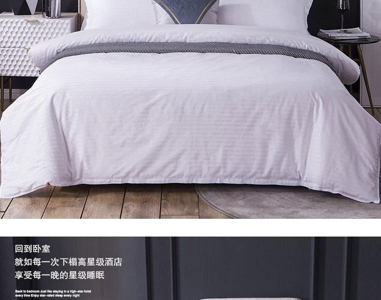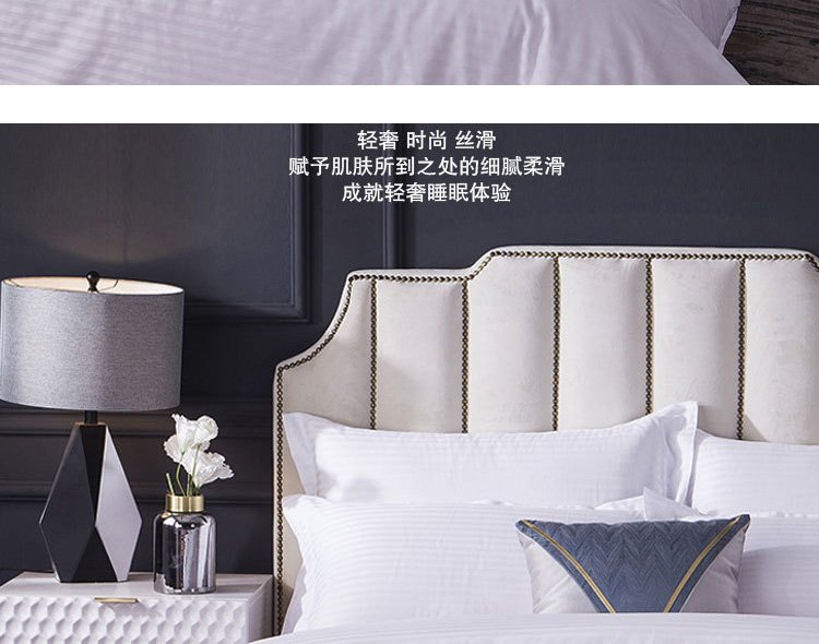 描述:本公司为客户提供各种酒店布草,多种款式、支持来图定制,均是全工艺一手品牌面料,细致考究的工艺,富裕每一个床品细腻如绸的柔软触感。