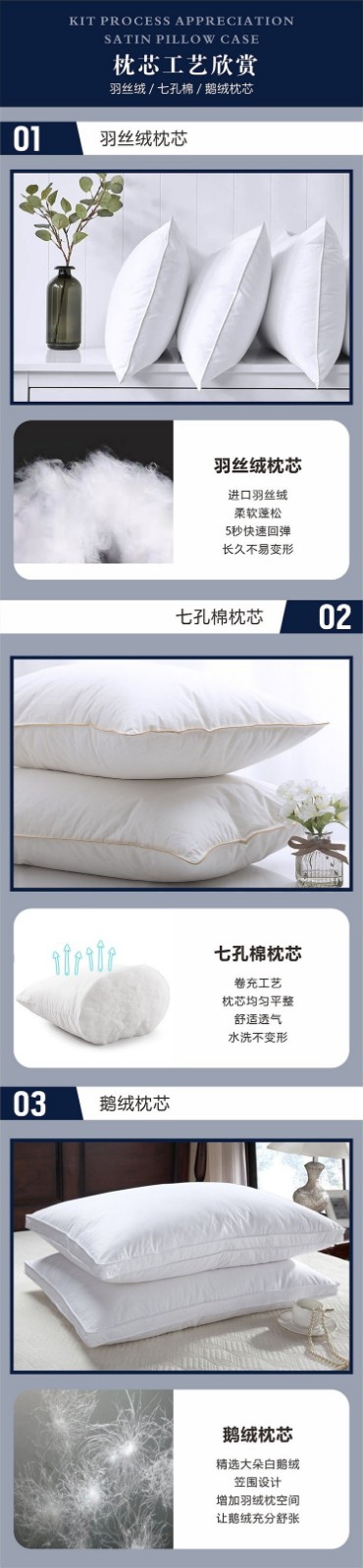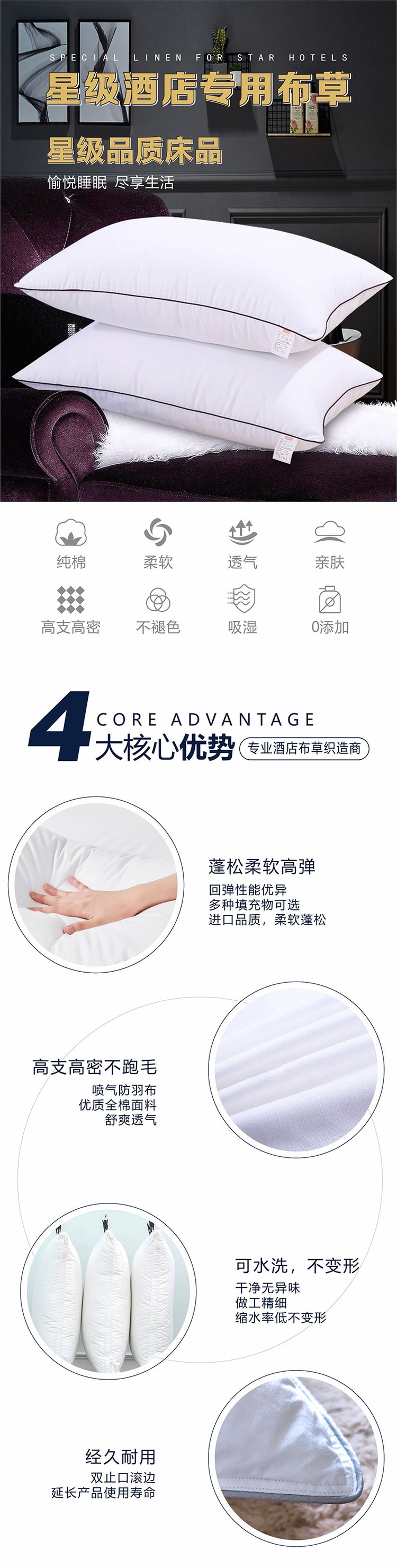 星级酒店专用白色鹅绒枕/羽丝绒枕/棉枕(填充物可选)